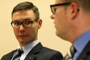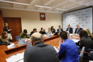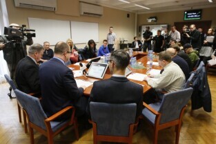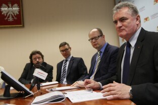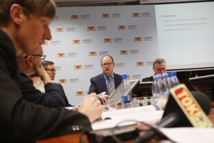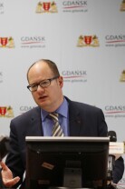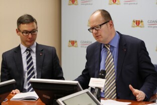 Urząd Miejski w Gdańsku. Konferencja prasowa podsumowująca półmetek kadencji gdańskiego samorządu, w której udział wzięli Prezydent Gdańska Paweł Adamowicz, Przewodniczący Rady Miasta Gdańska Bogdan Oleszek, Przewodniczący Klubu Platformy Obywatelskiej w RMG Maciej Krupa.