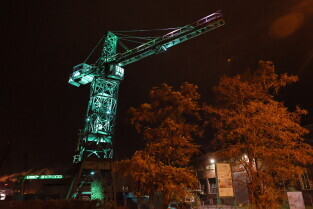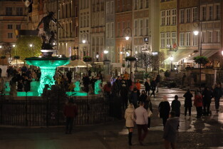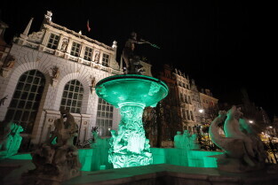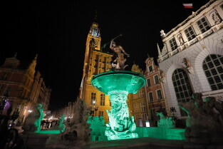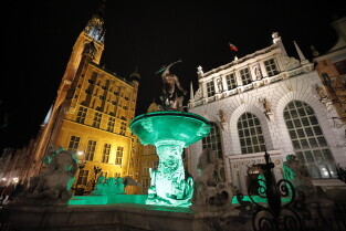 Gdańsk.Podświetlenia na zielono w związku z akcją Granica.