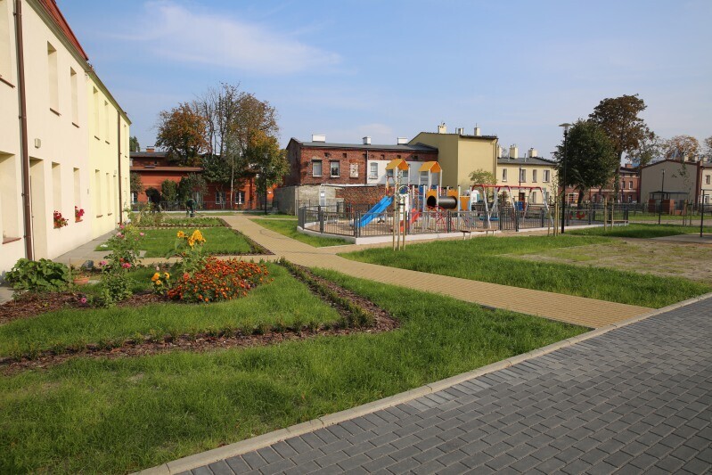 W ramach projektu rewitalizacji dzielnicy zaniedbane niegdyś przestrzenie podwórzowe, przekształcone zostały w wielofunkcyjne, przyjazne dla mieszkańców podwórka.