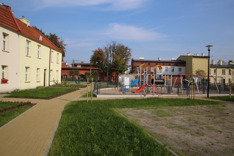 W ramach projektu rewitalizacji dzielnicy zaniedbane niegdyś przestrzenie podwórzowe, przekształcone zostały w wielofunkcyjne, przyjazne dla mieszkańców podwórka.