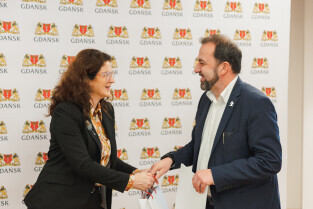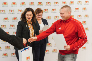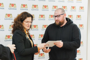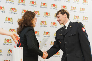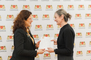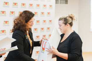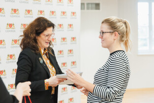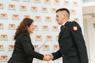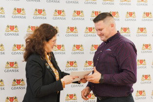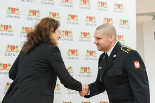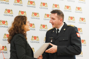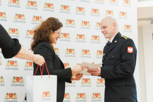 Gdańsk, Hevelianum. Podziękowania za pomoc przy powodzi. Nagrody i podziękowania wręczyła Prezydent Gdańska, Aleksandra Dulkiewicz.