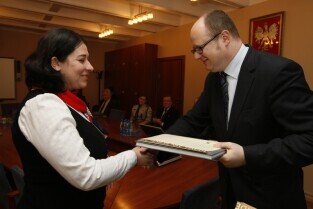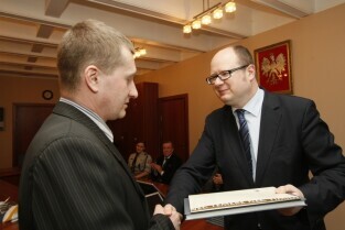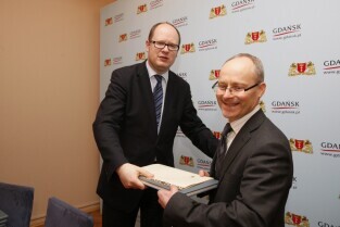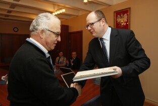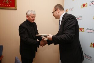Prezydent Gdańska Paweł Adamowicz podziękował osobom zaangażowanych w organizację Wigilii dla Bezdomnych. Gdańsk, Urząd Miejski