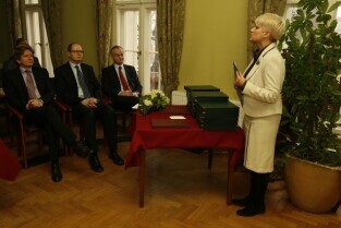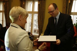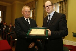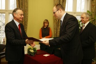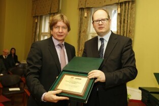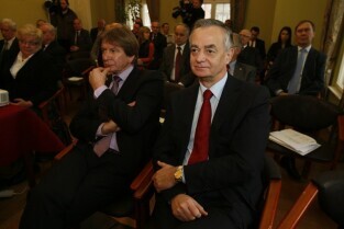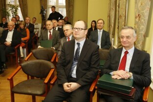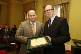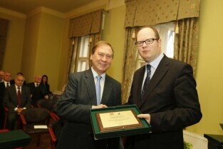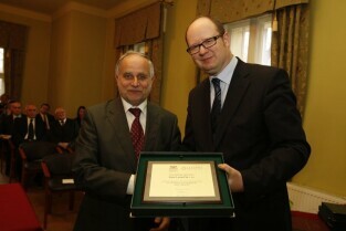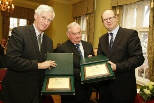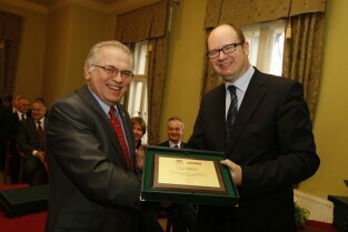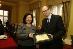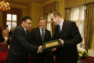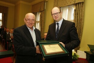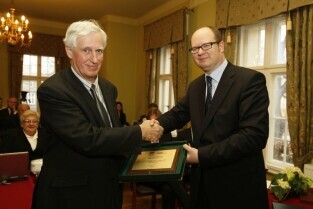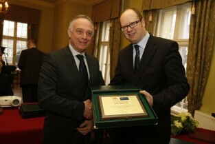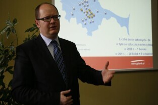 Podsumowanie projektu budowy boisk przyszkolnych "Junior Euro 2012", podczas którego prezydent Gdańska Paweł Adamowicz podziękował biznesmenom za sponsorowanie budowy boisk i wręczył pamiątkowe grawertony