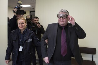 Otwarcie Pogotowia Socjalnego dla Osób Nietrzeźwych przy ul. Srebniki w Gdańsku. Nz. Z-ca Prezydenta Gdańska Piotr Kowalczuk w alkogoglach wciela się w rolę pacjenta ośrodka
