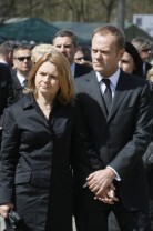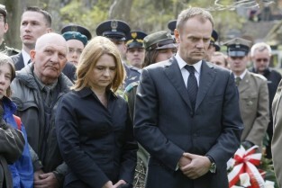Gdańsk, Cmentarz Srebrzysko. Pogrzeb Arkadiusa "Arama" Rybickiego, który zginął w katastrofie samolotu prezydenckiego pod Smoleńskiem. Nz. Małgorzata i Donald Tusk