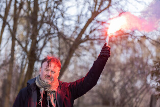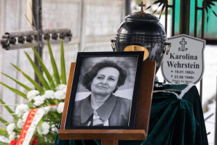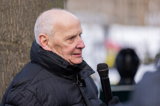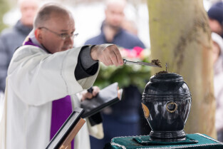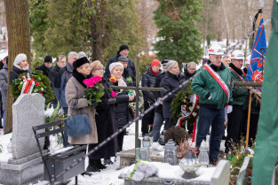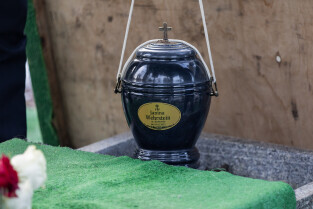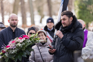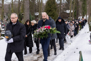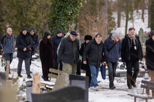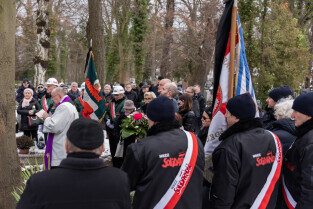 Gdańsk, Cmentarz Garnizonowy. Pogrzeb Janiny Wehrstein. Nz. Jacek Taylor