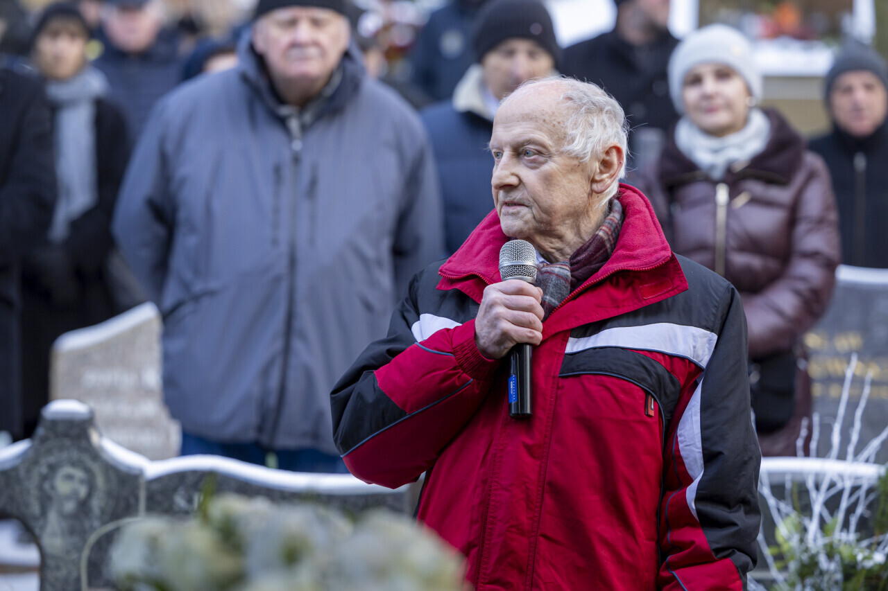 Gdańsk. Pogrzeb przedsiębiorcy i byłego radnego miasta Mirosława Zdanowicza. Nz. Przemawia Aleksander Żubrys, Przewodniczący Rady Seniorów
