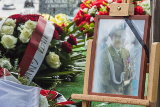 Gdańsk, Cmentarz Łostowicki. Pogrzeb Władysława Dobrowolskiego. Nz. dr Karol Nawrocki (IPN)