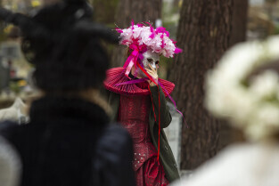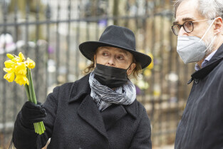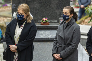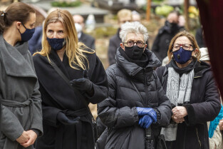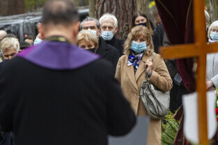 Sopot. Cmentarz Komunalny. Pogrzeb pomysłodawcy i wieloletniego dyrektora Teatru Szekspirowskiego w Gdańsku, prof. Jerzego Limona. Nz. Wdowa po profesorze Justyna Limon