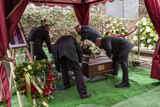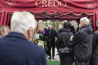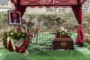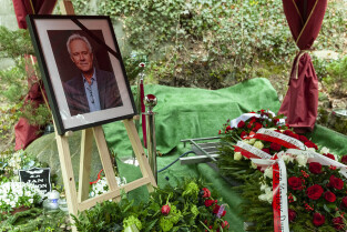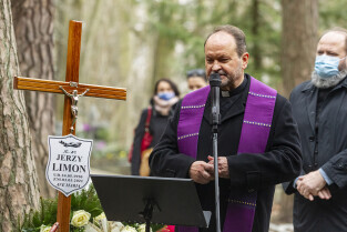 Sopot. Cmentarz Komunalny. Pogrzeb pomysłodawcy i wieloletniego dyrektora Teatru Szekspirowskiego w Gdańsku, prof. Jerzego Limona.