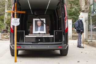 Sopot. Cmentarz Komunalny. Pogrzeb pomysłodawcy i wieloletniego dyrektora Teatru Szekspirowskiego w Gdańsku, prof. Jerzego Limona. Nz. Brat profesora