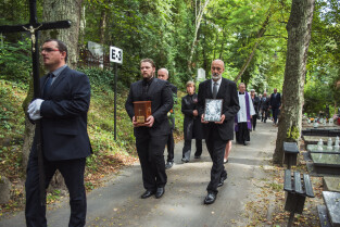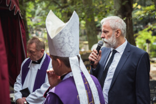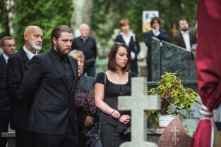 Sopot. Pogrzeb prof. Wiesława Gruszkowskiego. Nz. Tomasz Gruszkowski