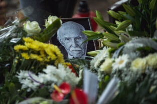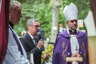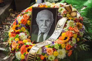 Sopot. Pogrzeb prof. Wiesława Gruszkowskiego. Nz. Jakub Szczepański z Wydziału Architektury Politechniki Gdańskiej