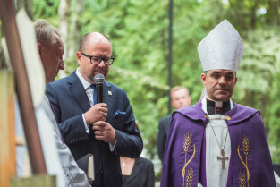 Sopot. Pogrzeb prof. Wiesława Gruszkowskiego. Nz. Prezydent Gdańska Paweł Adamowicz i bp. Zbigniew Zieliński