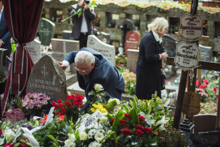 Sopot. Pogrzeb prof. Wiesława Gruszkowskiego. Nz. Jan Gruszkowski