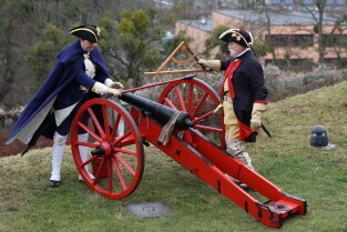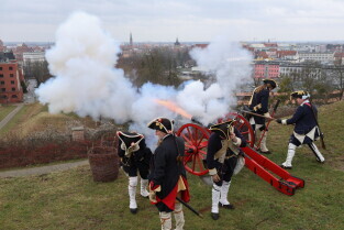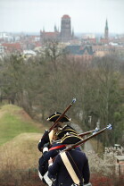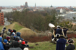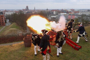 Gdańsk. Pokaz artyleryjski na Górze Gradowej w wykonaniu Rekonstruktorów i rekonstruktorek ze Stowarzyszenia Garnizon Gdańsk.