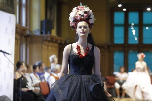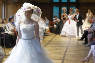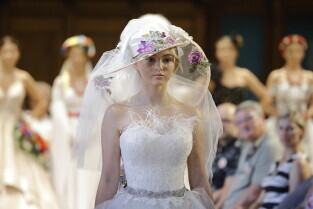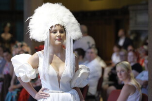 Gdańsk. Święto Kociewia. Pokaz mody sukien ślubnych pt. „Awangarda Kociewska” i finisaż wystawy Kociewie ART. Nz. Kamila Froelke.