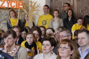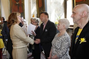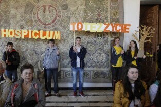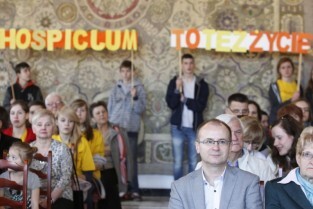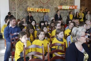 Pola Nadziei w Gdańsku. Akcja charytatywna polegająca na zbiórce przez wolontariuszy pieniędzy na działalność hospicyjną. Uroczystość nadania dziesięciu osobom tytułów Honorowego Wolontariusza. Gdańsk, Ratusz Głównego Miasta