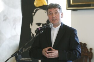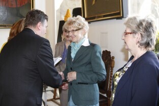 Pola Nadziei w Gdańsku. Akcja charytatywna polegająca na zbiórce przez wolontariuszy pieniędzy na działalność hospicyjną. Uroczystość nadania dziesięciu osobom tytułów Honorowego Wolontariusza. Gdańsk, Ratusz Głównego Miasta. Nz. Z-ca Prezydenta Gdańska Maciej Lisicki