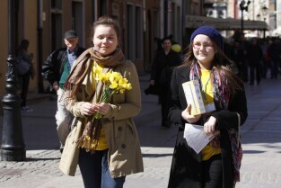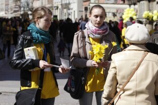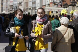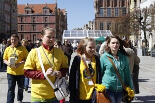 Pola Nadziei w Gdańsku. Akcja charytatywna polegająca na zbiórce przez wolontariuszy pieniędzy na działalność hospicyjną. Gdańsk, Droga Królewska