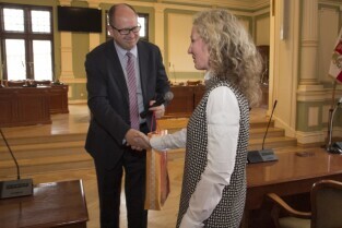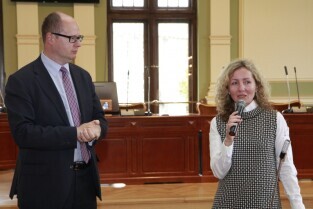 Gdańsk, Nowy Ratusz. Wizyta członków Związku Polaków na Białorusi. Z Polakami zamieszkałymi za naszą wschodnią granicą spotkał się prezydent Gdańska Paweł Adamowicz.
