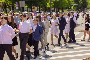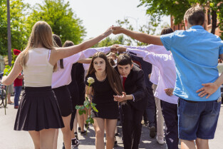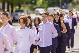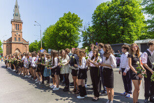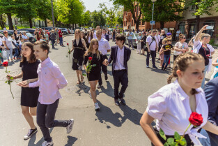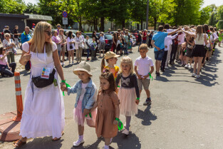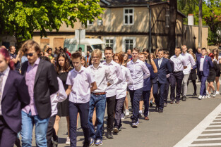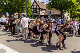 Gdańsk, ul. Gościnna. Polonez uczniów oruńskich szkół