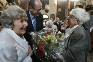 Gdańsk, Dwór Artusa. Spotkanie byłej Polonii Gdańskiej w ramach III Zjazdu Gdańszczan. Nz. po prawej Prof. Andrzej Januszajtis