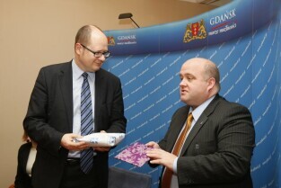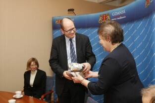 Spotkanie Prezydenta Gdańska Pawła Adamowicza z grupą dzieci wraz z opiekunami i pomysłodawcami projektu "Polska Tales", a także Honorowymi Ambasadorami Gdańska w Wielkiej Brytanii i członkami Anglo-Polish Society