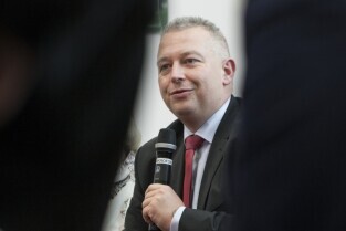 Gdańsk, PGE Arena. Konferencja prasowa poświęcona trwającemu w Gdańsku X Polsko-Rosyjskiego Forum Turystycznego. Nz. Marszałek Woj. Pomorskiego Mieczysław Struk