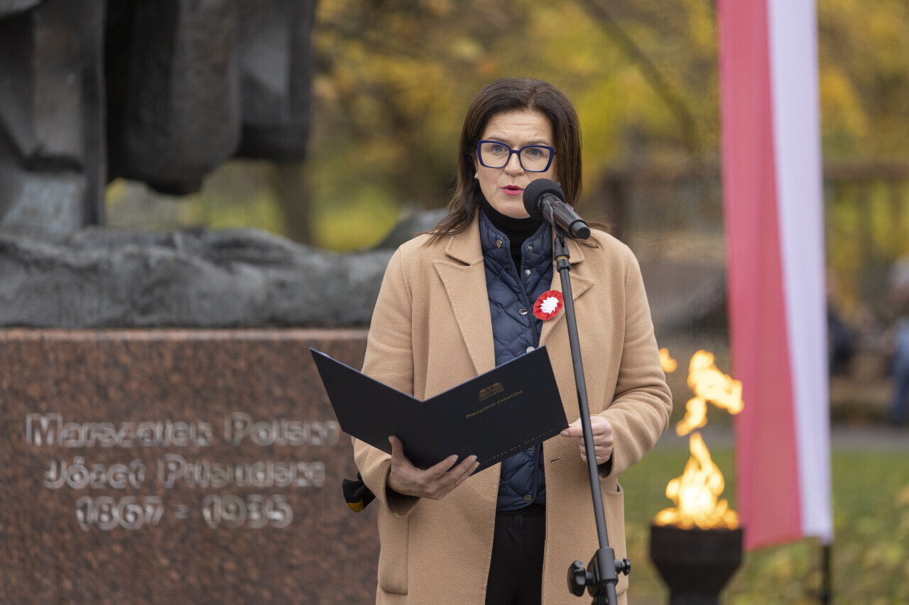 Pomnik marszałka Józefa Piłsudskiego. Uroczystość w przeddzień Narodowego Święta Niepodległości