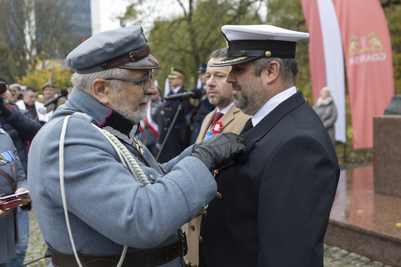 Gdańsk, Pomnik marszałka Józefa Piłsudskiego. Uroczystość w przeddzień Narodowego Święta Niepodległości.