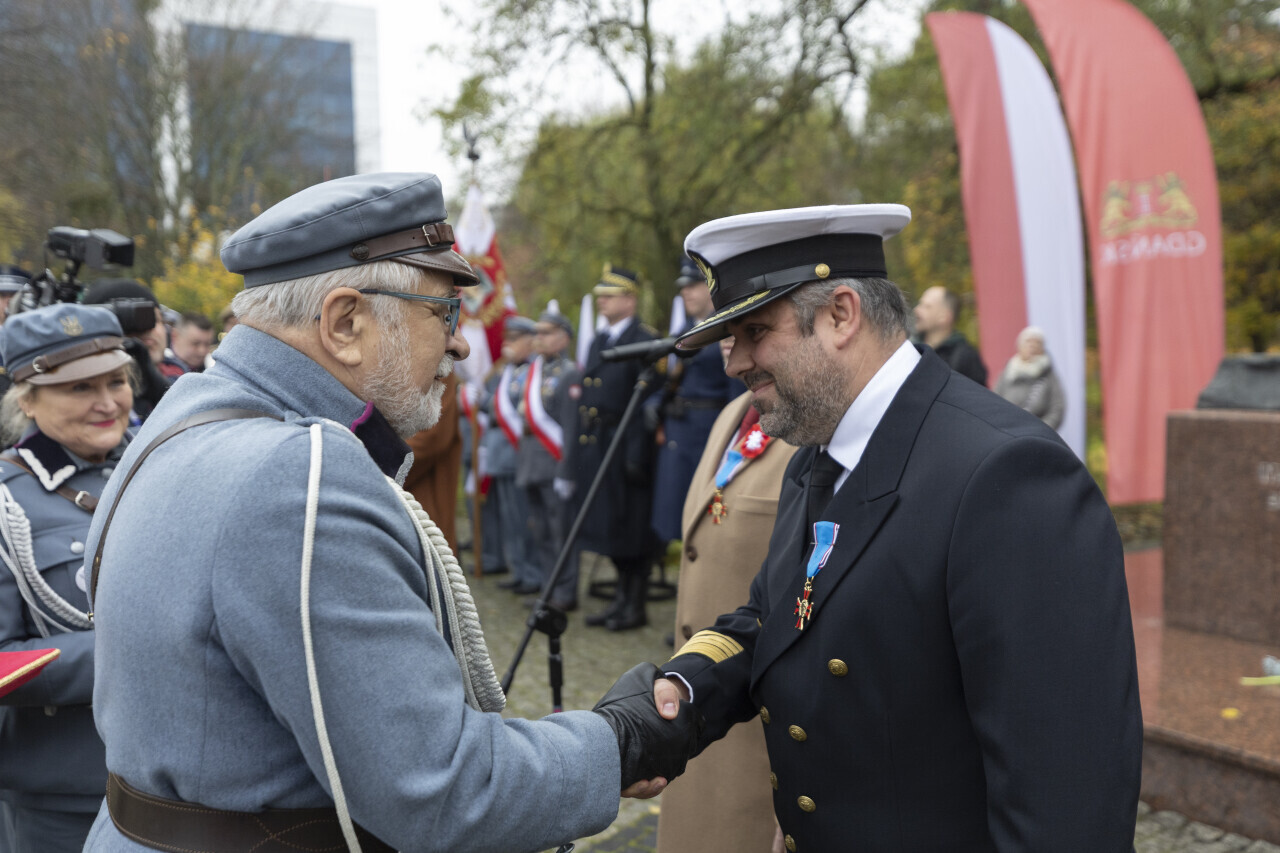 Gdańsk, Pomnik marszałka Józefa Piłsudskiego. Uroczystość w przeddzień Narodowego Święta Niepodległości.