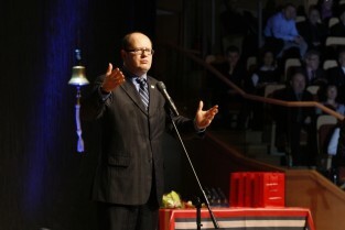 Pomorska Gala Żeglarstwa, podczas której nagrodzono sportowców i organizatorów imprez żeglarskich. Gdańsk, Filharmonia Bałtycka. Nz. Prezydent Gdańska Paweł Adamowicz