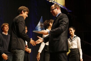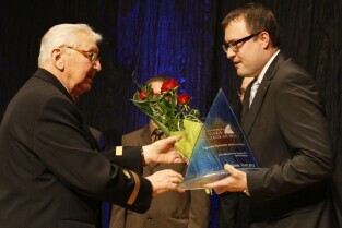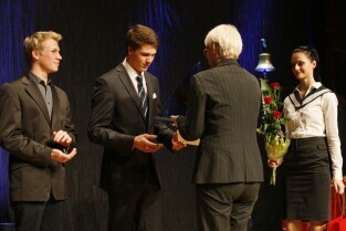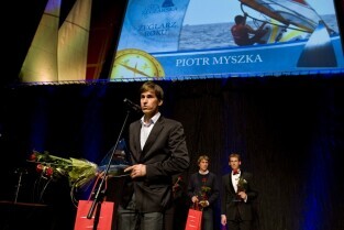 Pomorska Gala Żeglarstwa, podczas której nagrodzono sportowców i organizatorów imprez żeglarskich. Gdańsk, Filharmonia Bałtycka. Nz. nagroda w kategorii Junior Roku, którą otrzymuje Paweł Tarnowski