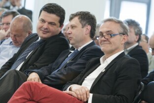 Politechnika Gdańska. VI Pomorski Kongres Obywatelski odbywający się pod hasłem "Dobro wspólne - lepsza jakość życia". Nz. od prawej: Prezydent Gdyni Wojciech Szczurek, Prezydent Sopotu Jacek Karnowski, Podsekretarz stanu w Ministerstwie Rozwoju Regionalnego Paweł Orłowski