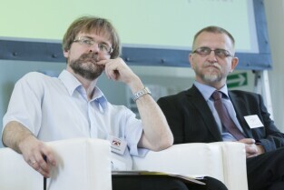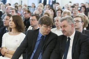 Politechnika Gdańska. VI Pomorski Kongres Obywatelski odbywający się pod hasłem "Dobro wspólne - lepsza jakość życia". Nz. Mirosław Bieliński (Prezes ENERGA SA) i Przemysław Kluz (Gdańska Fundacja Innowacji Społecznej)