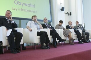 Politechnika Gdańska. VI Pomorski Kongres Obywatelski odbywający się pod hasłem "Dobro wspólne - lepsza jakość życia". Nz. od lewej: Jan Szomburg (Prezes Zarządu Instytutu Badań nad Gospodarką Rynkową), Marcin Skrzypek (Ośrodek Brama Grodzka - Teatr NN), Wojciech Kłosowski (ekspert samorządowy), dr Joanna Kusiak (Stowarzyszenie Duopolis, Uniwersytet Warszawski), Mirosław Bieliński (Prezes ENERGA SA), Przemysław Kluz (Gdańska Fundacja Innowacji Społecznej)