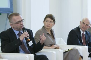 Politechnika Gdańska. VI Pomorski Kongres Obywatelski odbywający się pod hasłem "Dobro wspólne - lepsza jakość życia". Nz. od lewej: Wojciech Kłosowski (ekspert samorządowy), dr Joanna Kusiak (Stowarzyszenie Duopolis, Uniwersytet Warszawski), Mirosław Bieliński (Prezes ENERGA SA)