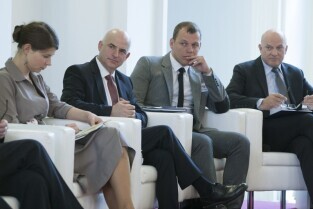 Politechnika Gdańska. VI Pomorski Kongres Obywatelski odbywający się pod hasłem "Dobro wspólne - lepsza jakość życia". Nz. od lewej: dr Joanna Kusiak (Stowarzyszenie Duopolis, Uniwersytet Warszawski), Mirosław Bieliński (Prezes ENERGA SA), Przemysław Kluz (Gdańska Fundacja Innowacji Społecznej), Paweł Olechnowicz (Prezes LOTOS SA)