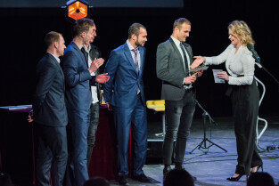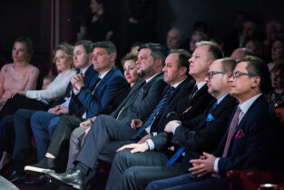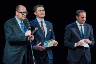 Gdańsk. Teatr Wybrzeże. Pomorskie Sztormy 2017. Nz. Prezydent Gdańska Paweł Adamowicz, Wiceprezydent Gdańska Piotr Grzelak i Marszałek Województwa Pomorskiego Mieczysław Struk