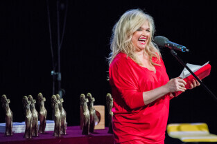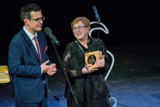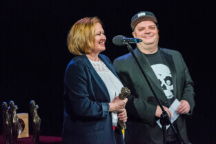 Gdańsk. Teatr Wybrzeże. Pomorskie Sztormy 2017. Nz Mikołaj Chrzan-Naczelny Gazety Wyborczej Trójmiasto i Krystyna Szymańska z Fundacji ARMAAG