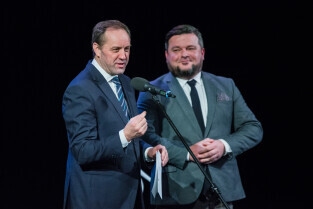 Gdańsk. Teatr Wybrzeże. Pomorskie Sztormy 2017. Nz. Marszałek Województwa Pomorskiego Mieczysław Struk i Paweł Orłowski-Zarząd Województwa Pomorskiego