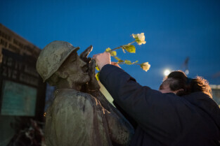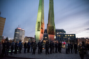 Gdańsk. Plac Solidarności pod Pomnikiem Poległych Stoczniowców 1970