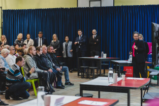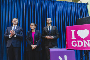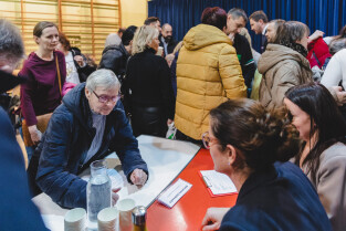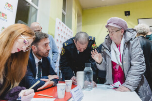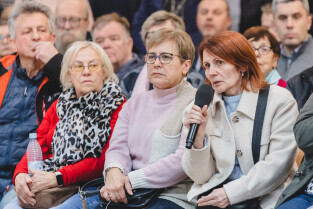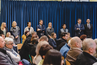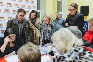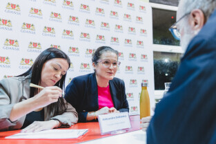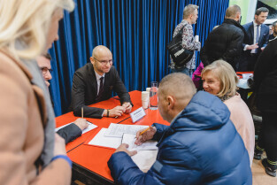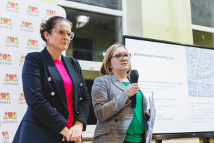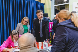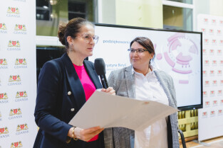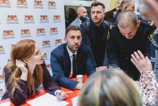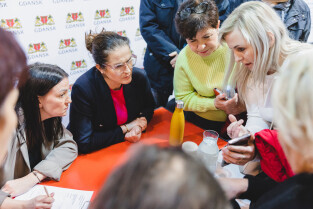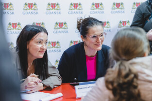 Gdańsk, SP nr 69 im. gen. Stanisława Sosabowskiego. Porozmawiajmy przy stole o dzielnicy Młyniska. W spotkaniu wzięli udział Aleksandra Dulkiewicz – prezydent Gdańska, zastępcy prezydenta oraz dyrektorzy miejskich jednostek organizacyjnych.