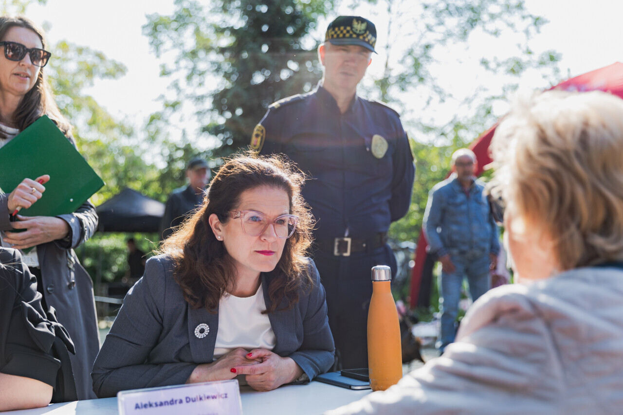 Gdańsk, plac gen. Stanisława Maczka u zbiegu ulic Chopina i Wojska Polskiego. Porozmawiajmy przy stole o dzielnicy Strzyża. W spotkaniu brali udział Aleksandra Dulkiewicz, prezydent Gdańska, zastępcy prezydenta oraz dyrektorzy wydziałów i miejskich jednostek organizacyjnych, a także radni miejscy i radni dzielnicy.