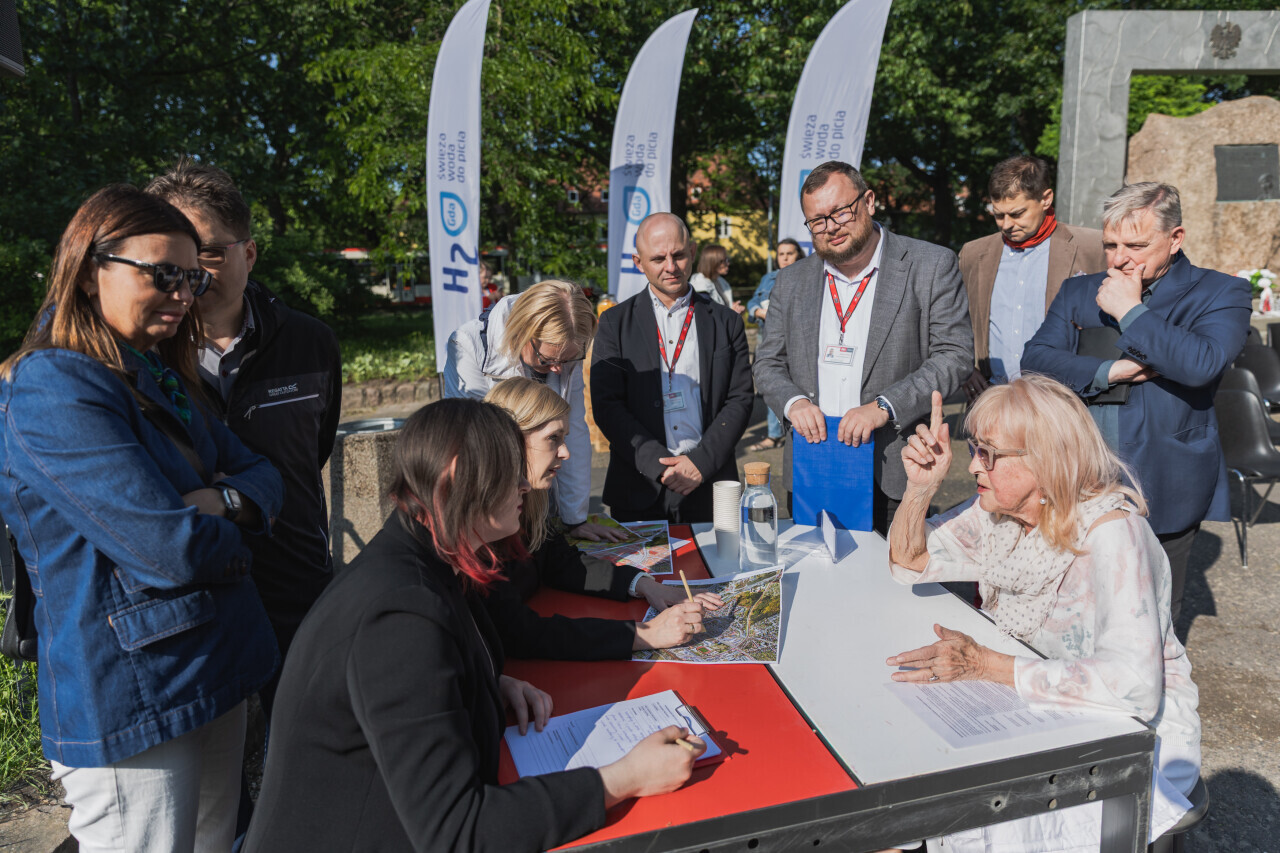 Gdańsk, plac gen. Stanisława Maczka u zbiegu ulic Chopina i Wojska Polskiego. Porozmawiajmy przy stole o dzielnicy Strzyża. W spotkaniu brali udział Aleksandra Dulkiewicz, prezydent Gdańska, zastępcy prezydenta oraz dyrektorzy wydziałów i miejskich jednostek organizacyjnych, a także radni miejscy i radni dzielnicy.