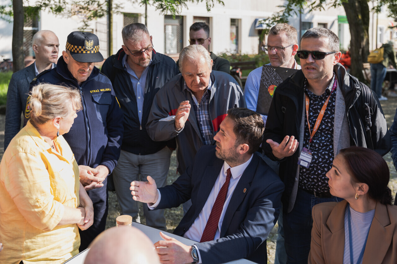 Gdańsk, plac gen. Stanisława Maczka u zbiegu ulic Chopina i Wojska Polskiego. Porozmawiajmy przy stole o dzielnicy Strzyża. W spotkaniu brali udział Aleksandra Dulkiewicz, prezydent Gdańska, zastępcy prezydenta oraz dyrektorzy wydziałów i miejskich jednostek organizacyjnych, a także radni miejscy i radni dzielnicy.