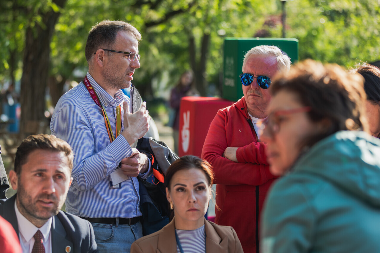 Gdańsk, plac gen. Stanisława Maczka u zbiegu ulic Chopina i Wojska Polskiego. Porozmawiajmy przy stole o dzielnicy Strzyża. W spotkaniu brali udział Aleksandra Dulkiewicz, prezydent Gdańska, zastępcy prezydenta oraz dyrektorzy wydziałów i miejskich jednostek organizacyjnych, a także radni miejscy i radni dzielnicy.