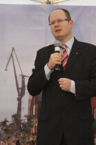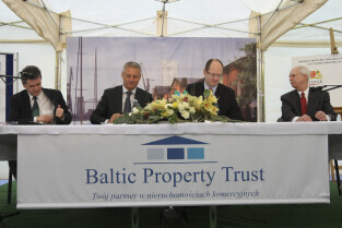 Podpisanie porozumienia Miasta GdaĹska i Baltic Property Trust ws. budowy ul. Nowej WaĹowej. Nz. Torben Schøn, Prezes Rady Nadzorczej BPTO S.A., symbolicznie rozpoczyna inwestycjÄ