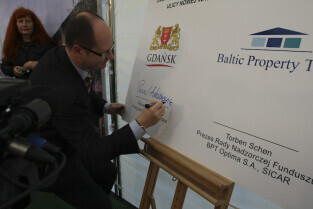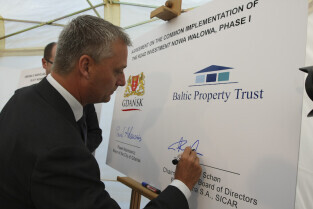 Podpisanie porozumienia Miasta GdaĹska i Baltic Property Trust ws. budowy ul. Nowej WaĹowej. Nz. umowÄ symbolicznie podpisuje Torben Schøn, Prezes Rady Nadzorczej BPTO S.A.